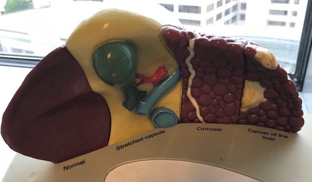 Above are the models that decorated the windowsill in the consultation room today. The segments second from the right on both show representations of a cirrhotic liver.